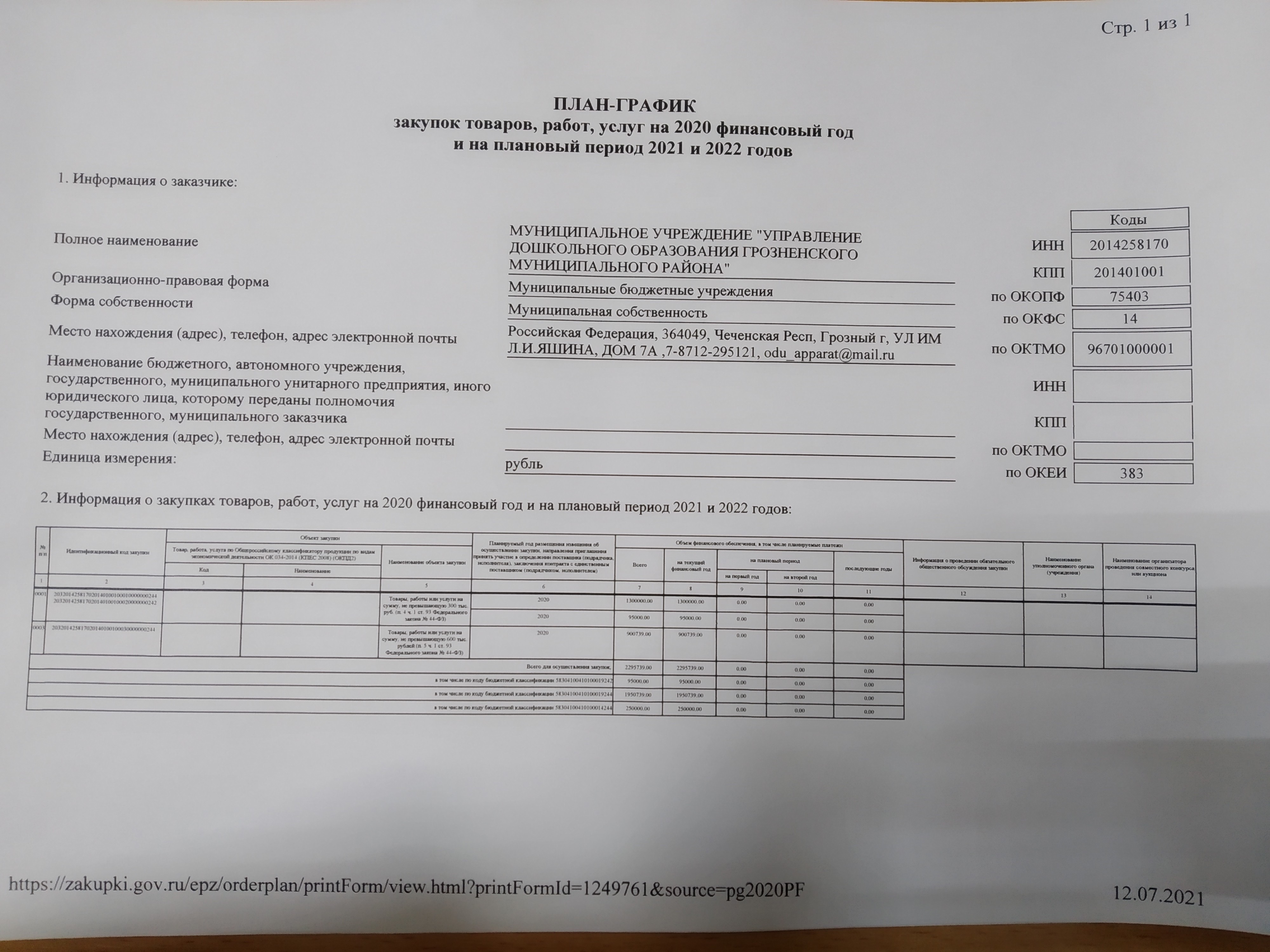 Приказ о закреплении территорий Грозненского муниципального района Чеченской Республики за муниципальными бюджетными дошкольными образовательными учреждениями Грозненского муниципального района Чеченской Республики (2022 г.)