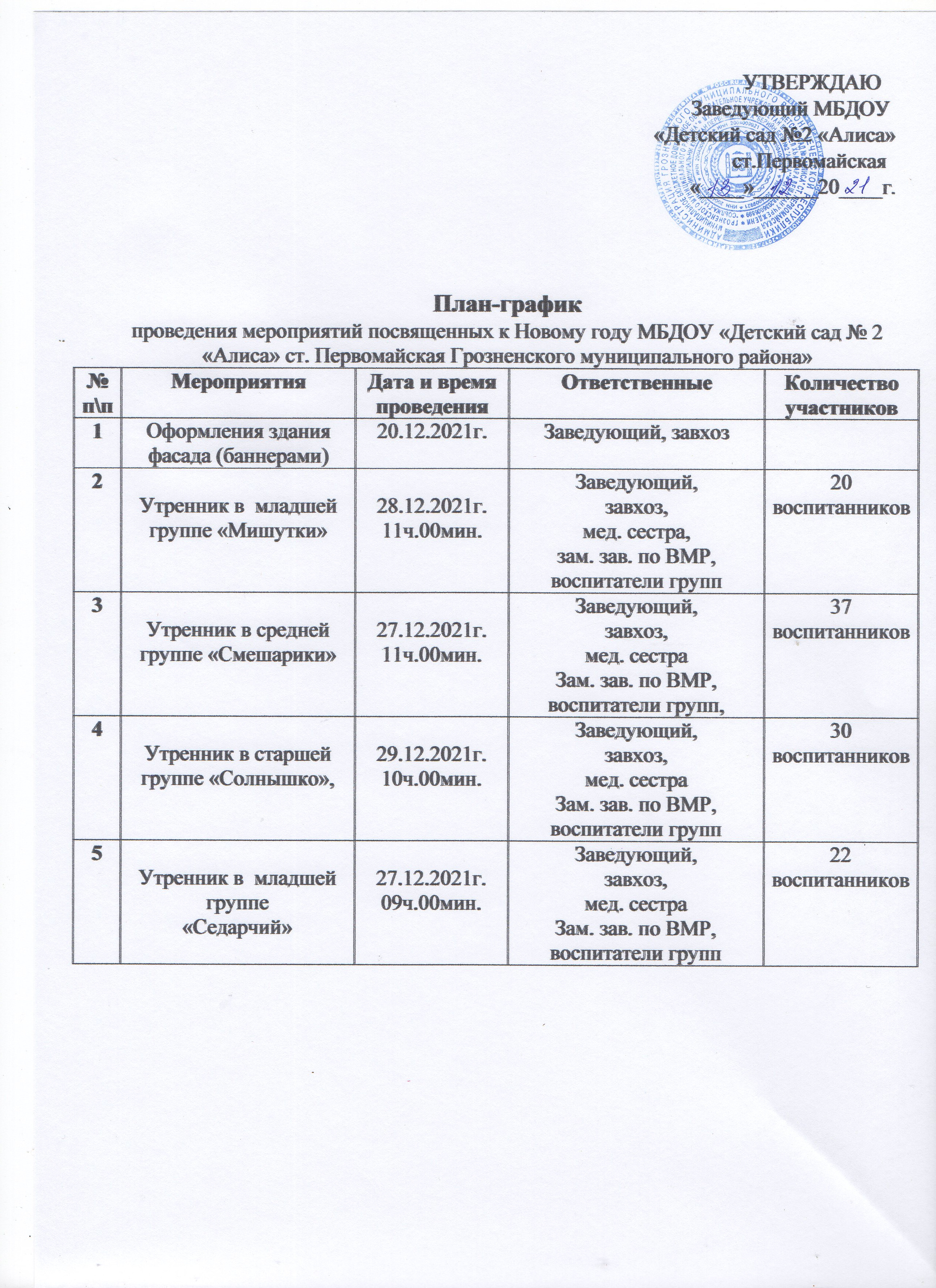 Муниципальное бюджетное дошкольное образовательное учреждение "Детский сад №2 "Алиса" ст. Первомайская Грозненского муниципального района"