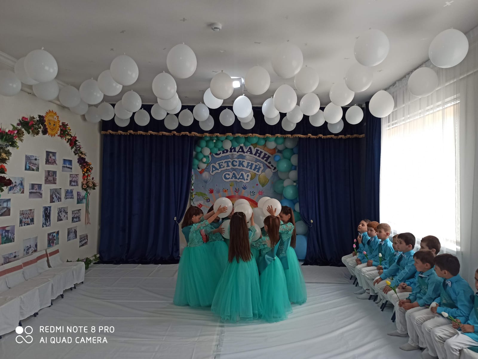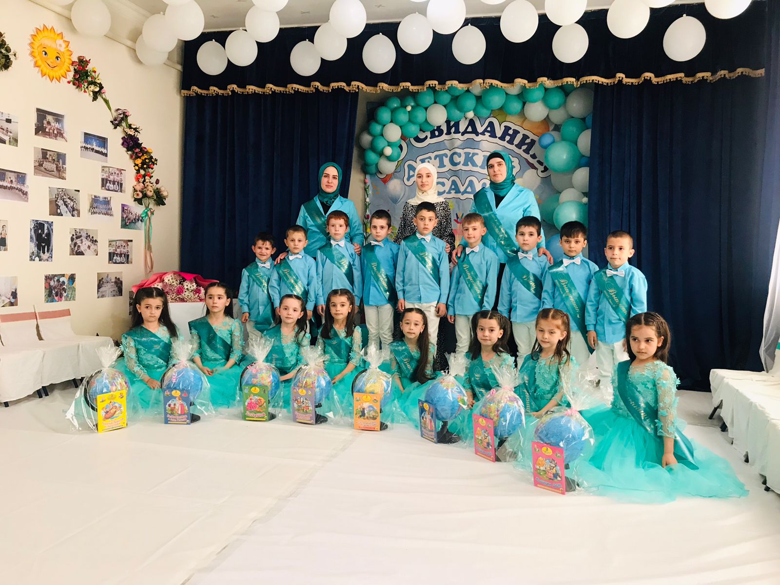 Начался праздник с торжественного выхода выпускников - дети как-то сразу повзрослели: красивые, нарядные, они стали похожи на школьников. В течение всего утренника они показали свои знания и умения, которые приобрели за годы, проведенные в детском саду: спели много песен, рассказали стихи, порадовали танцами.