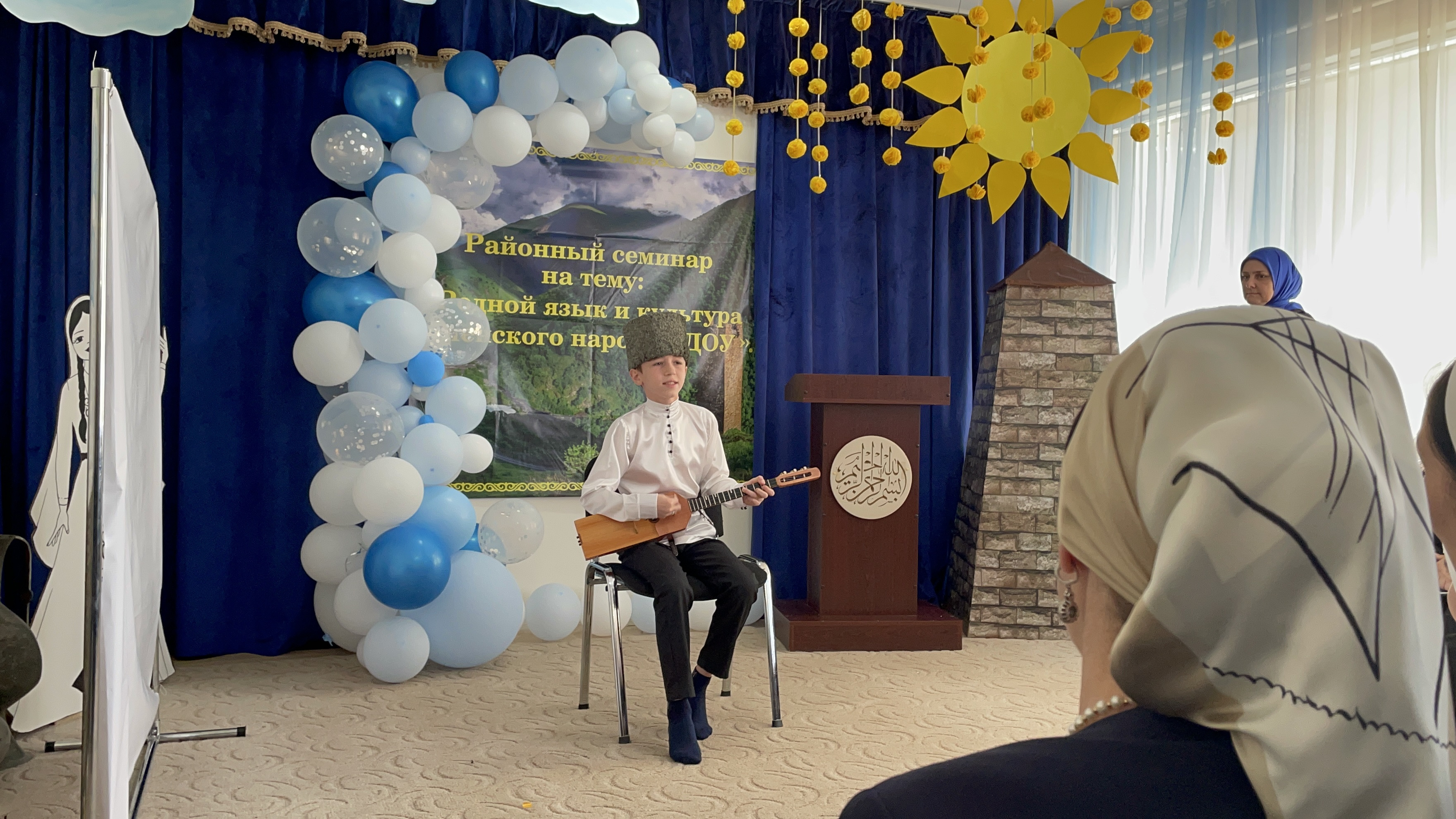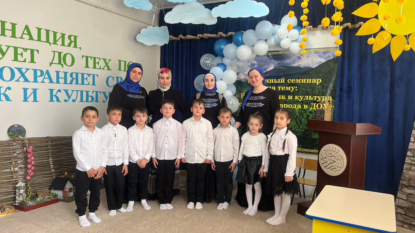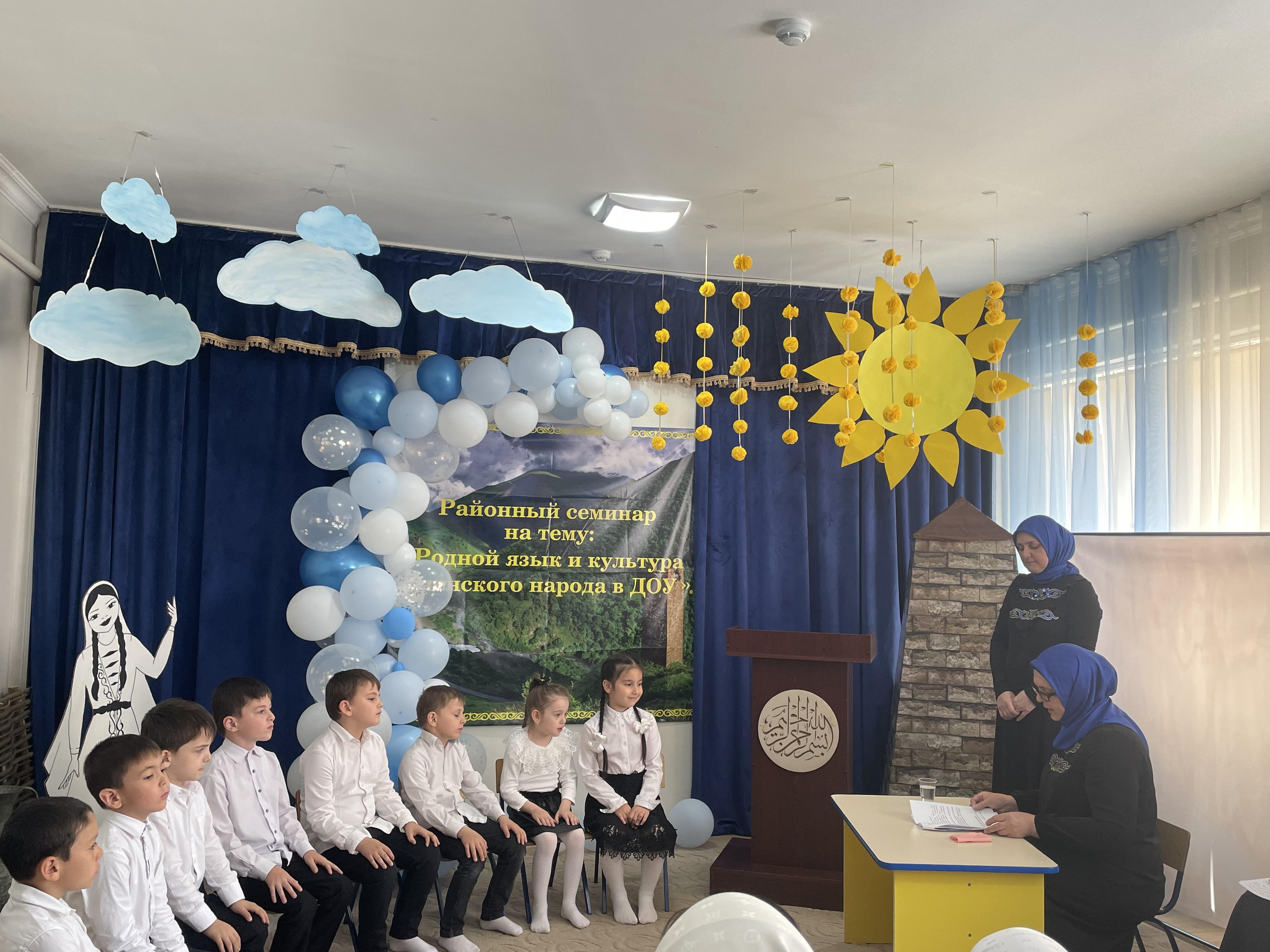 17.05.2023На базе МБДОУ «Детский сад 2 «Алиса» ст.Первомайская» прошел районный семинар на тему: «Родной язык и культура чеченского народа» Заведующая детским садом №1 «Теремок» Упаева Марина Мухадиевна выступила с докладом на тему : «Приобшение детей к традициям и обычаем Чеченского народа. Воспитатель детского сада №3 «Нана» Махмерзаева Малика Султановна подготовила доклад-презентацию на тему: «Изучение родного языка и культуры Чеченского народа». Также с докладом выступила руководитель районного МО воспитателей Шамсадова Яхита Вахитовна, тема доклада: «Приобшение детей дошкольного возраста к истокам Чеченской народной культуре»Воспитатель Азиева З. провела ООД занятие с воспитанниками подготовительной группы на тему «НОХЧИЙН КЬОМАН ЛАМАСТАШ, Г1ИЛЛАКХ-ОЬЗДАНГАЛЛА»