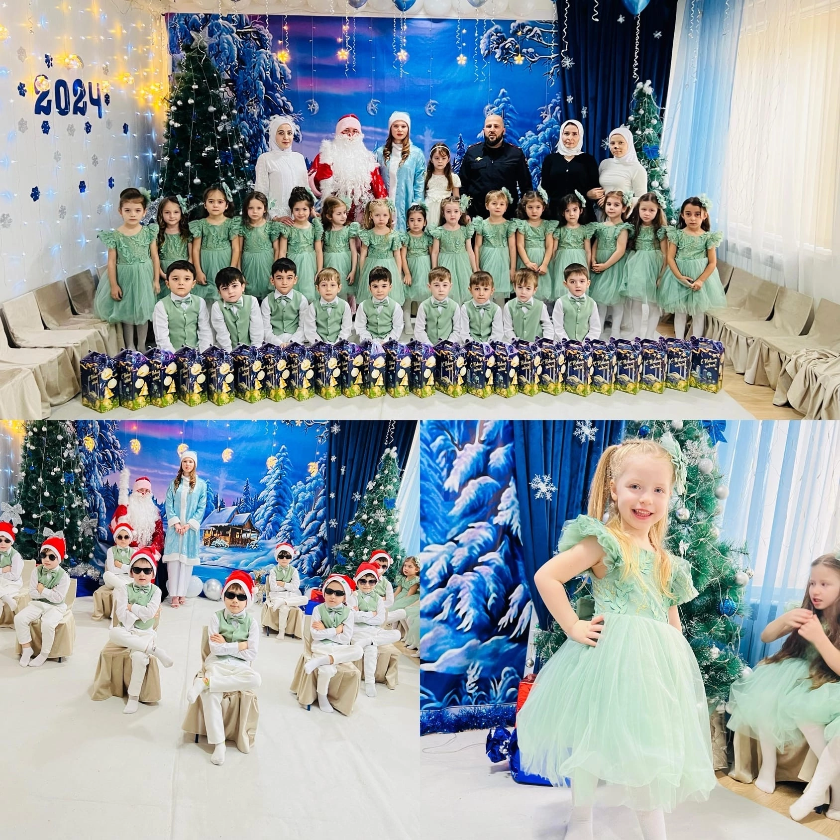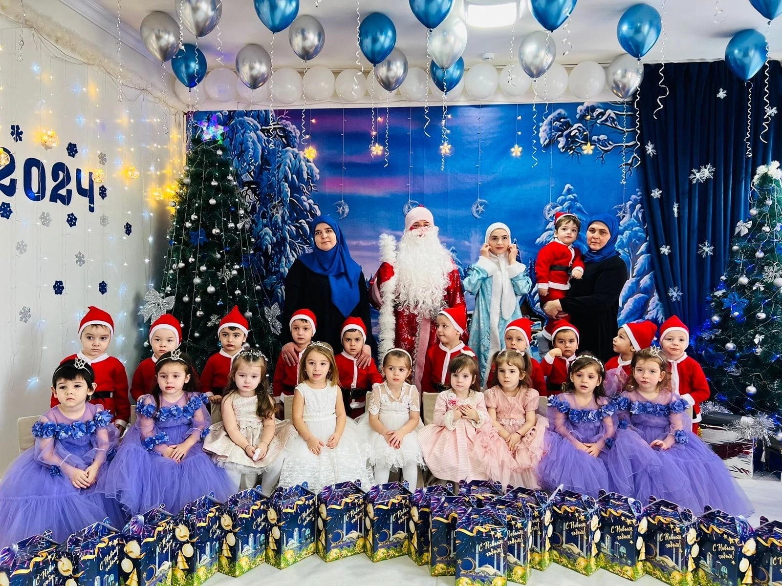 29.12.2023Вот красавица-зима принесла с собой весёлые долгожданные новогодние праздники, одарила всех подарками! А для наших детей в гостеприимных стенах нашего сада.С 25.12 по 28.12.2023 г. прошли новогодние утренники под руководством старшего воспитателя М.Х. Магомадовой. Новый год – время исполнения заветных желаний, и для детей ожидание новогоднего праздника связано с предвкушением волшебства от встречи с Дедом Морозом и Снегурочкой. Атмосфера праздника царила в детском саду всю предновогоднюю неделю, и проведённые утренники окунули всех в сказку.