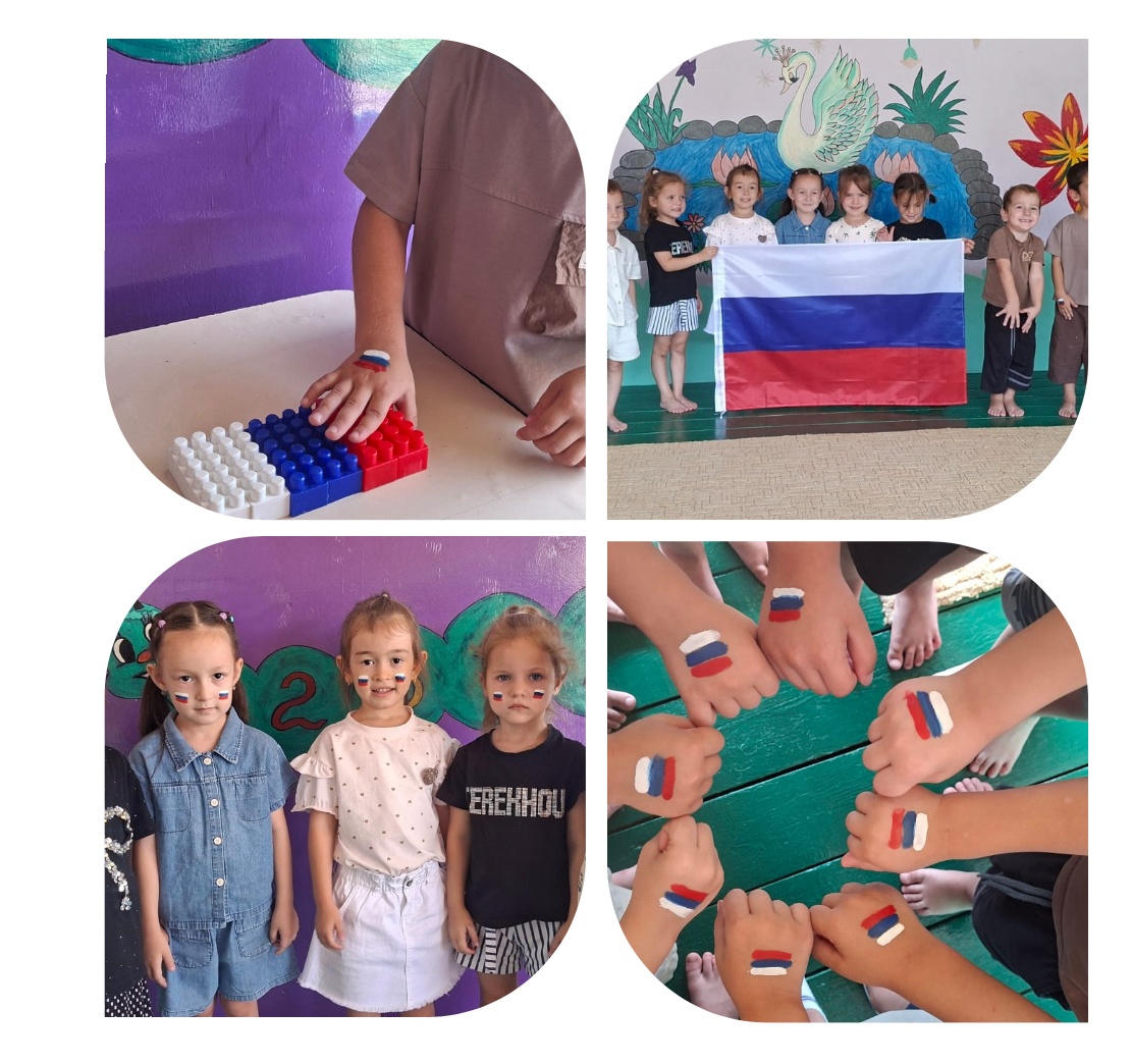 В нашем детском саду прошли мероприятия, посвящённые Дню рождения Российского флага. Были проведены комплексные игровые беседы "Один флаг – одна Россия", "День Российского флага".